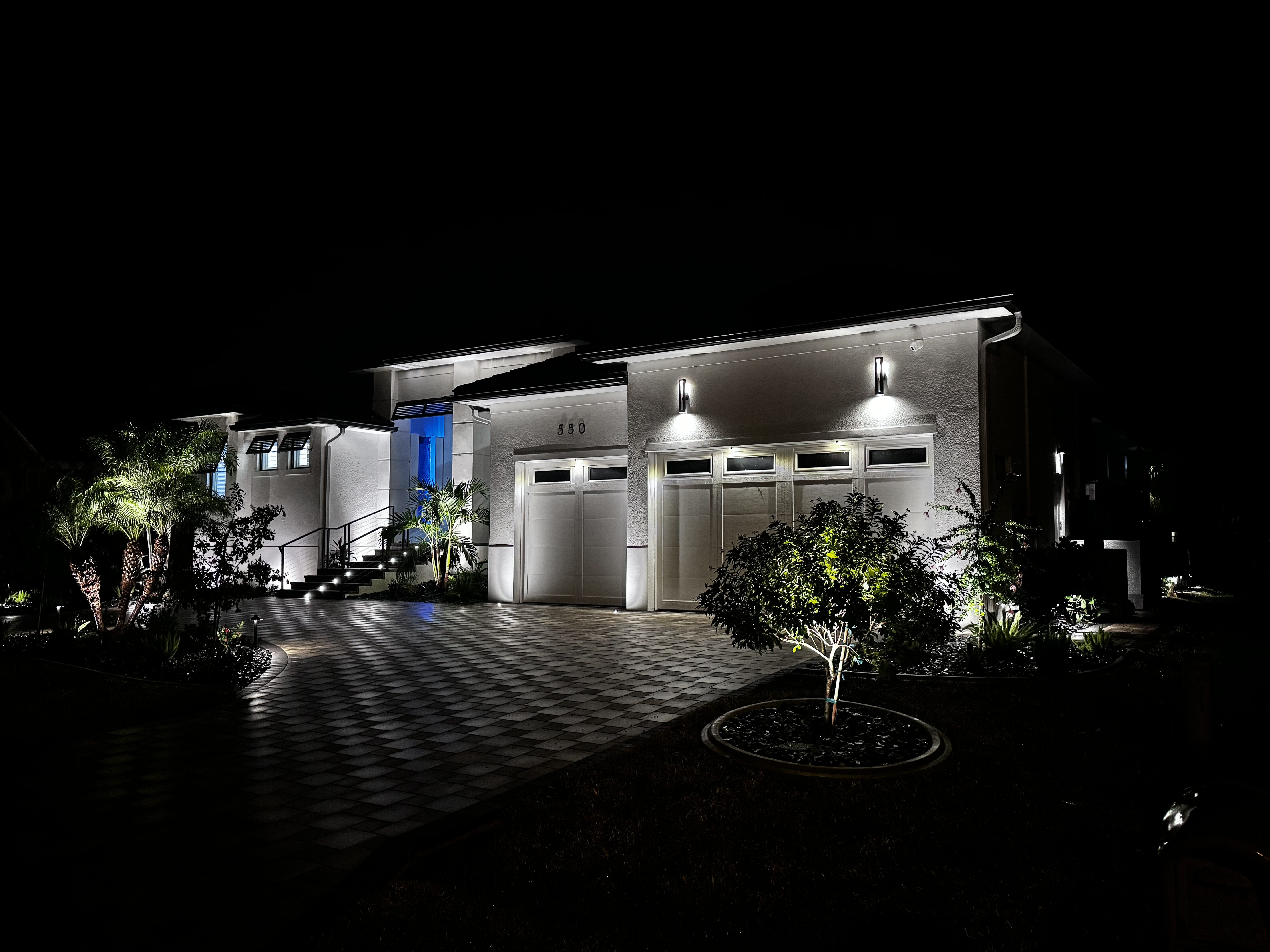 For this new Punta Gorda outdoor lighting installation, Get Lit Landscape Lighting partnered with Towles Corp of SWFL to integrate a Platinum Package lighting system during construction. Early collaboration allowed for precise fixture placement and concealed wiring, resulting in a clean, seamless finished appearance.